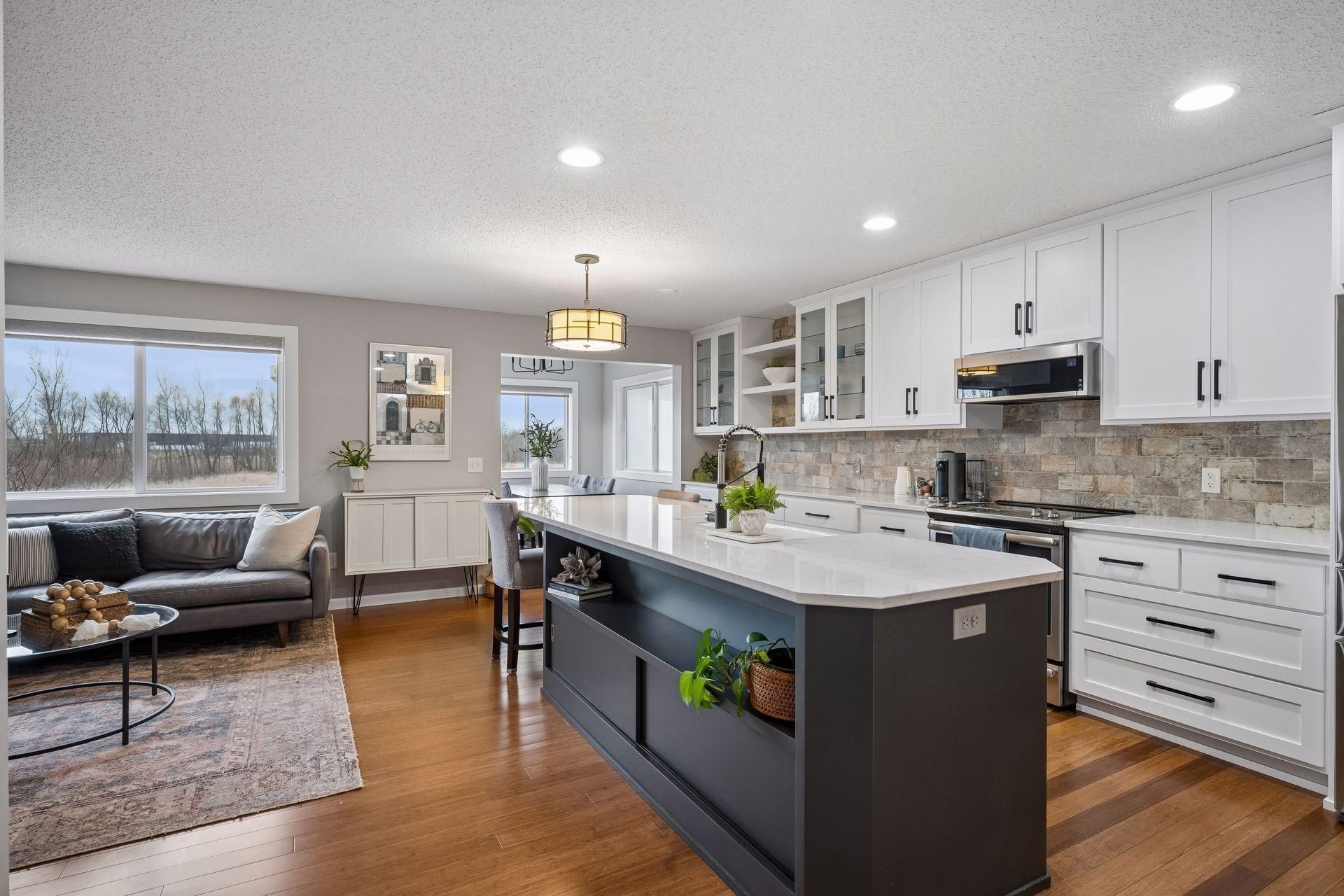 NO ASSOCIATION- STUNNING END UNIT townhome offering west-facing views of the private preserve.Beautifully remodeled custom kitchen featuring soft-close cabinetry, a spacious 10-foot center island with storage, quartz countertops, a stone backsplash, and high-end stainless steel appliances. The open-concept design is filled with incredible natural light, bamboo hardwood floors, great room with a stone gas fireplace and a vaulted sunroom that provides the perfect setting for formal dining or relaxing. Conveniently located main-level laundry room is tucked into the mudroom for everyday ease with a half bath that has been tastefully remodeled with a new vanity and fixtures. Upstairs, a versatile loft with built-in shelving and a guest bed can easily be converted into a third bedroom or a private home office. The spacious primary suite features a full bathroom with a jetted tub, separate shower, dual vanity, and a walk-in closet. Secondary bedroom and remodeled additional full bathroom are both beautiful and spacious. The walkout lower level offers an expansive amount of additional living space and storage. Outside, enjoy an oversized patio perfect for outdoor entertaining with a partial fence that adds both privacy and a safe space for kids or pets to play. Located in the highly sought-after Rogers High School and Elk River Schools, this home is just minutes from the Albertville Outlet Mall, restaurants, parks, trails and easy access to 94. This is truly an amazing opportunity to own a low maintenance home, beautifully updated, with a private yard and without the cost or regulations that comes with an association.